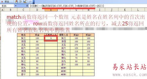 match函數(shù)將返回一個數(shù)組 元素是姓名在姓名列中的首次出現(xiàn)的位置,row函數(shù)將返回姓名所在的行號,減去25將返回所有姓名在姓名列中的位置