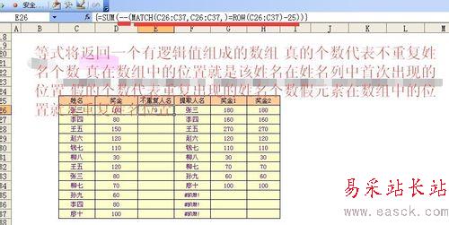經(jīng)過數(shù)值運算將邏輯值轉(zhuǎn)換成數(shù)值 最后累加得到的就是不重復姓名的個數(shù)