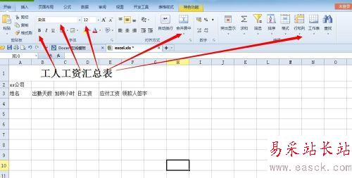 接下來需要處理的是你需要將對應的大標題“xx匯總表”需要足夠醒目,作為整面標題  需要合并單元格,將字體居中、變大并且需加粗。
