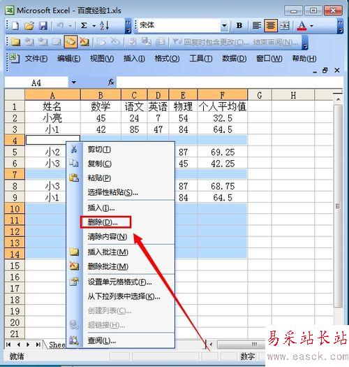 5、在右鍵其中一個空的單元格 然后點擊“刪除” 如圖