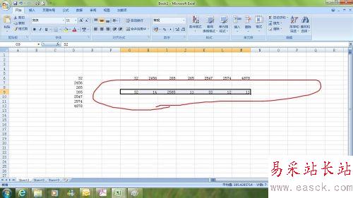 7、然后和常規(guī)輸入一樣,每輸入一個(gè)數(shù)據(jù),按一下回車,數(shù)據(jù)就會(huì)自動(dòng)沿著選中的行一個(gè)個(gè)橫向輸入了。