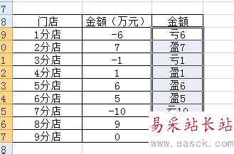 3、輸入完成后,點擊確定后,金額列就以盈虧平顯示了,為了將其具體的數字顯示出來,我們可以選中金額列,修改公式,就是在三個漢字后方添加0即可,操作步驟效果如下圖描述;