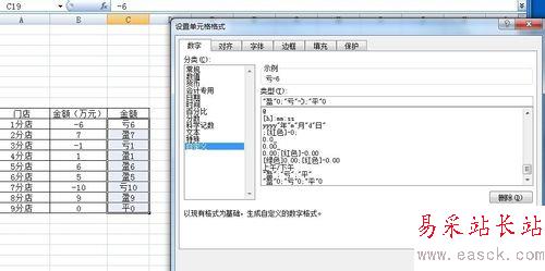 4、但是我們又發現虧的應該以負數表述的,我們再次選中金額列,給虧后面的0添加一個負號,編輯“公式”如下圖;