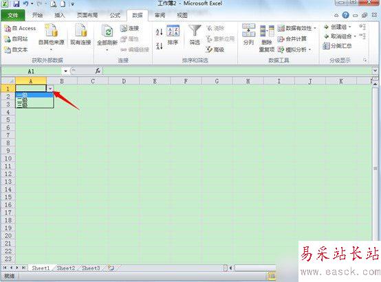 制作完成后,點(diǎn)擊制作好的單元格時(shí),會(huì)出現(xiàn)一個(gè)拉菜單的下拉箭頭,如下圖例: