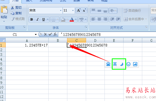 方法一:先在表格中輸入英文半角的“’”號(冒號后面那個鍵),其作用就是將該表格項的屬性改為“文本”。