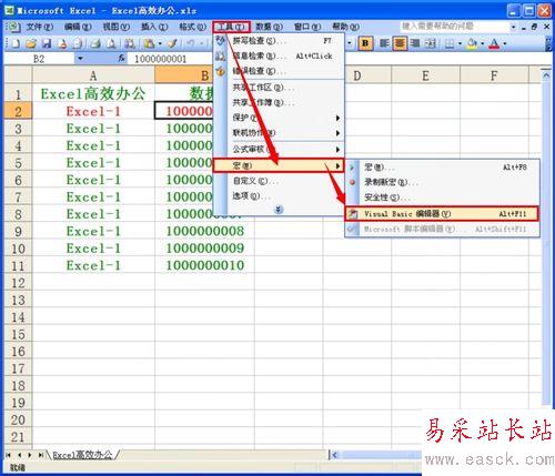編輯好數(shù)據(jù)模板后,打開VBA編輯器,選擇菜單“工具”——“宏”——“Visual Basic 編輯器”(快捷鍵為:Alt+F11);