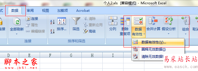 1.我們選擇一個單元格--數據--數據有效性--數據有效性