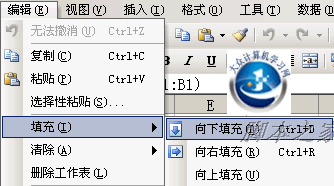 然后,選擇菜單“編輯”→“填充”→“向下填充”,如下圖。
