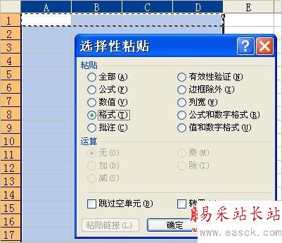 4.選擇A1:D1區(qū)域,復(fù)制,選擇A→D列,粘貼(如果A1:D1中已輸入數(shù)據(jù),可執(zhí)行“編輯”→“選擇性粘貼”→“格式”),這樣就把第2步中設(shè)置的格式賦予了A→D列的所有單元格。如圖2。