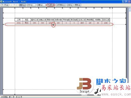 這里利用的是一種類似的“頁眉”的方式實現每一頁打印后都有一個“標題行”,這樣保證工資的明細項目在工資條上體現,然后每一個“標題行”下方跟一條記錄,最后打印出的效果就是工資條了,具體操作如下。