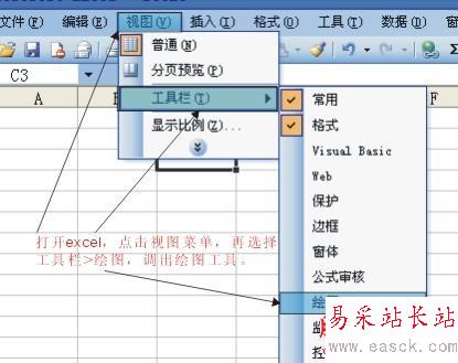 步驟1:調處繪圖工具:單擊 “視圖” 菜單,選擇“工具欄”,再選擇“繪圖”選項。