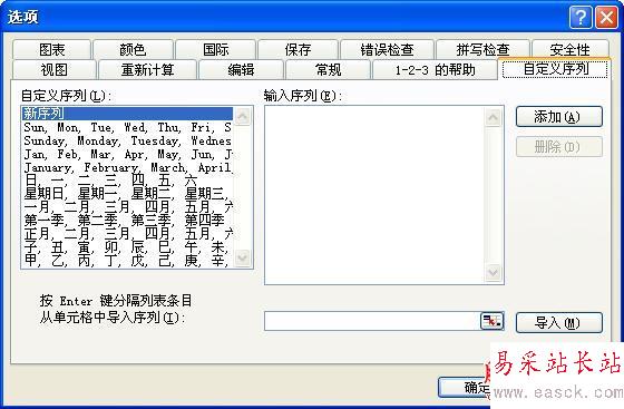 選擇 “ 工具 ”菜單中的 “選項” 命令,再選擇 “自定義序列 ”標簽,在輸入框中輸入新序列,注意在新序列各項之間要輸入半角符號的逗號加以分隔(例如:張小三,李小四,王小五 …… ),單擊 “ 增加 ” 按鈕將輸入的序列保存起來,這樣Excel自動編號的序列就完成了。