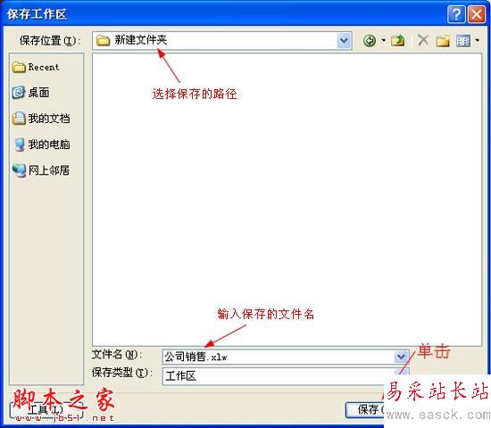 要通過工作區打開工作簿,首先需要將要一次性打開的工作簿保存為工作區(.xlw)類型,其具體操作如下: