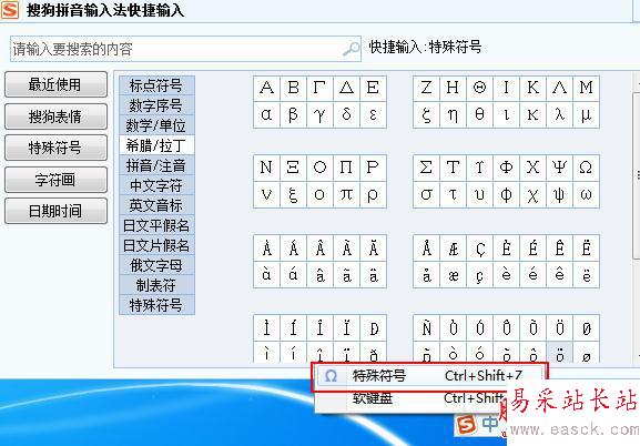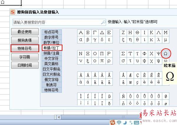 ,然后在點擊窗口中的【軟鍵盤】按鈕,再選擇【特殊符號】選項,及彈出如下圖所示的窗口,然后我們在選擇【特殊符號】-【希娜/拉丁】上面找到歐姆符號Ω。這樣操作就完成了。