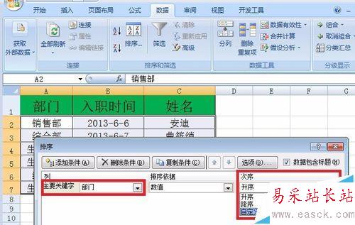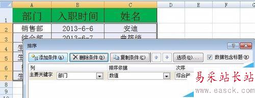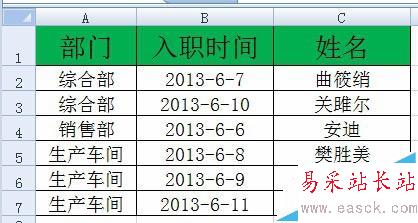 員工信息表里有部門還有姓名,領(lǐng)導(dǎo)要求首先按照綜合部、銷售部、生產(chǎn)車間的順序排序,然后部門內(nèi)再按照員工入職時(shí)間排序,一列數(shù)據(jù)排序相信大家都很熟悉了,那么對于這組內(nèi)排序我們該如何做呢?今天小編就給大家分享下通過添加多個(gè)關(guān)鍵字實(shí)現(xiàn)組內(nèi)排序的小方法。