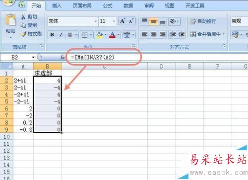 3、下面,我們來用Excel計算最基本的復(fù)數(shù)性質(zhì)。輸入公式=IMAGINARY(A2),求出復(fù)數(shù)的虛部,即虛數(shù)i前面的系數(shù)。