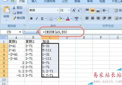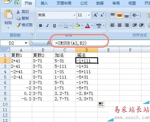 2、輸入公式=IMSUB(A2,B2),求出復(fù)數(shù)的差。