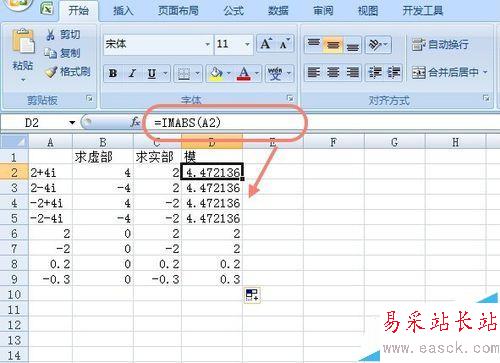 5、輸入公式=IMABS(A2),求出模,即復(fù)數(shù)的絕對值,
