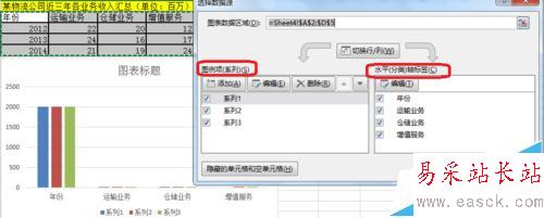 2、編輯數(shù)據(jù)系列,對(duì)系列名稱和系列值進(jìn)行編輯。