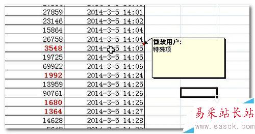 5、如下圖所示,設置好以后,可以看到紅色標志,并且把鼠標懸停在這個單元格上以后,會顯示批注內容
