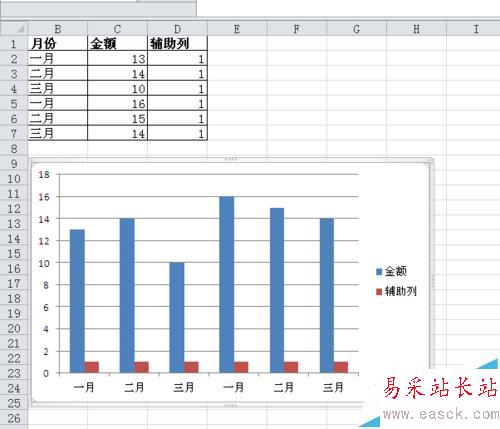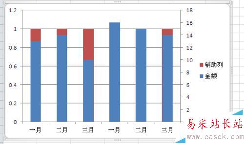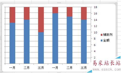 做背景的輔助列一定要做在主軸上,因為次軸數據會遮擋住主軸數據。