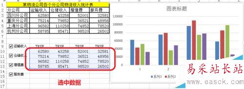3、軸標(biāo)簽區(qū)域——選擇分公司。更改X軸的數(shù)據(jù)。