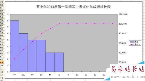 3、我用Excel做了這樣一些數(shù)據(jù),供參考,本例為考試得分,數(shù)據(jù)范圍確定為0-100