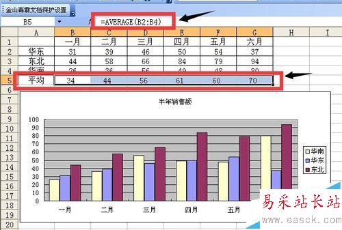2、為數(shù)據(jù)添加一個三個地區(qū)每月的平均值的行