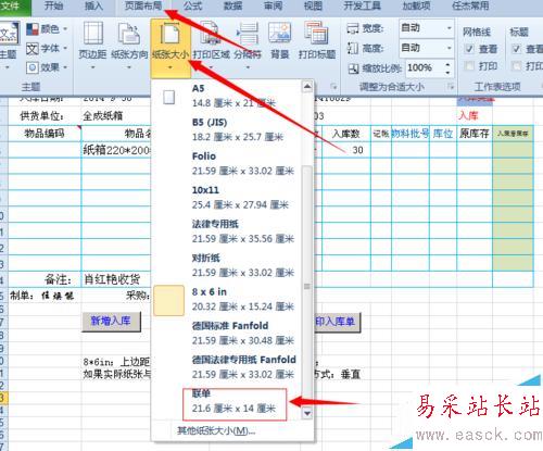 方法是:EXCEL頁面布局/紙張大小,在下拉列表中選取“聯單”。