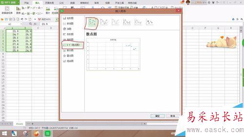 3、選擇插入表格,接著選擇圖表類型為x.y散點圖,圖形選擇第一種