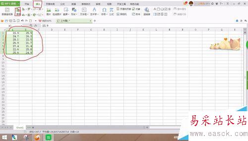 2、然后用鼠標選中選中數據區域,在工具欄上方選擇插入