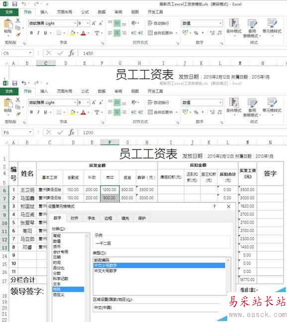 2、在表格中,每個人的工資都是以數字格式存在的數值,也就是阿拉伯數字形式。