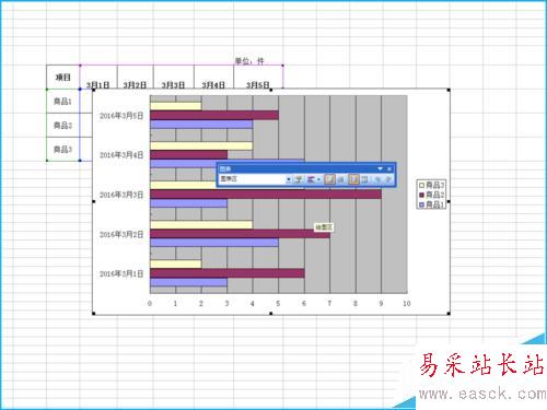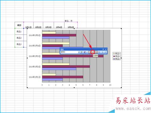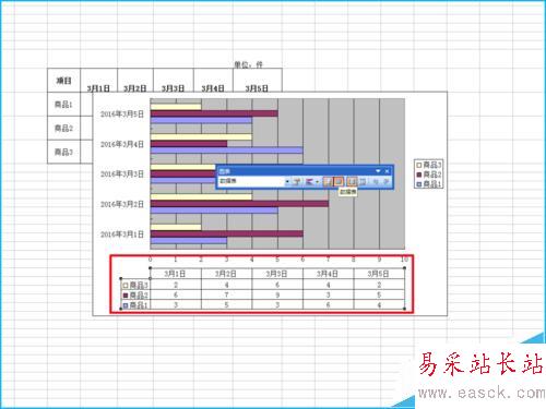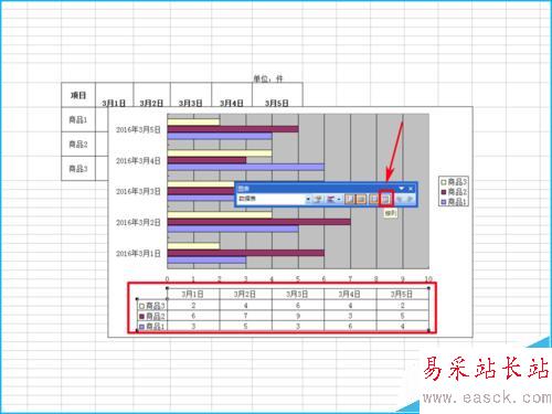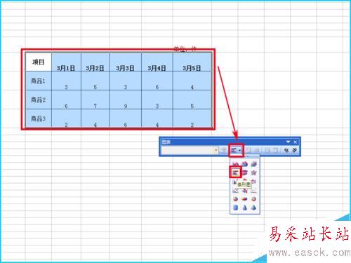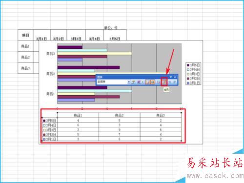 6、如果覺得數(shù)據(jù)縱橫向不對(duì),繼續(xù)點(diǎn)擊旁邊的【按列】,數(shù)據(jù)馬上進(jìn)行了變換。這樣的圖表和數(shù)據(jù)合二為一,親們?cè)購?fù)制到PPT燈片里就更方便快捷了。