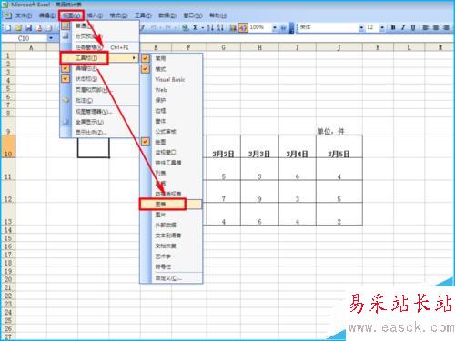 2、點(diǎn)擊工具欄的【視圖】|——【工具欄】——【圖表】,就會(huì)出現(xiàn)一個(gè)圖表對(duì)話框。