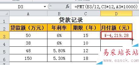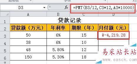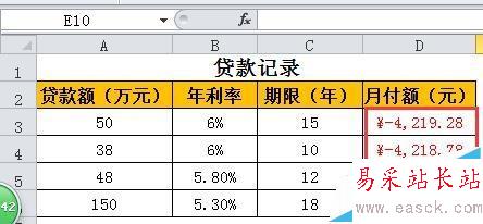 6、我們還可以根據需要分別更改貸款額,年利率,期限,月付額都會跟著自動變化了。