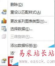 3、選中柱形圖的柱子,右鍵單擊在彈出的的選擇框中,選擇最后一項設置數據系列格式