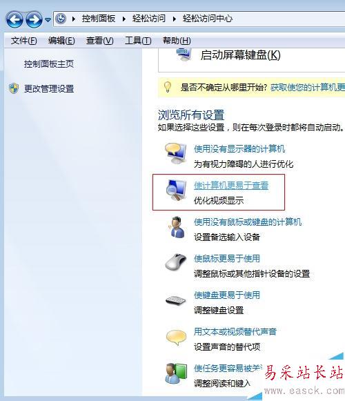 3、選擇輕松訪問,點擊使“計算機更易于查看”