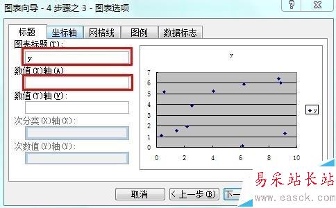 3、接著就進入了“圖表選項”,這里主要是對坐標抽和標題進行命名,但是此次主要是為了擬合,所以這里可以不做過多設置。