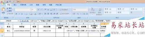 假設(shè)單元格G2(如圖所示)中為入職日期,分別在H2、I2、J2、K2自動(dòng)生成試用期滿日期、合同期滿日期、合同到期提醒、工齡。