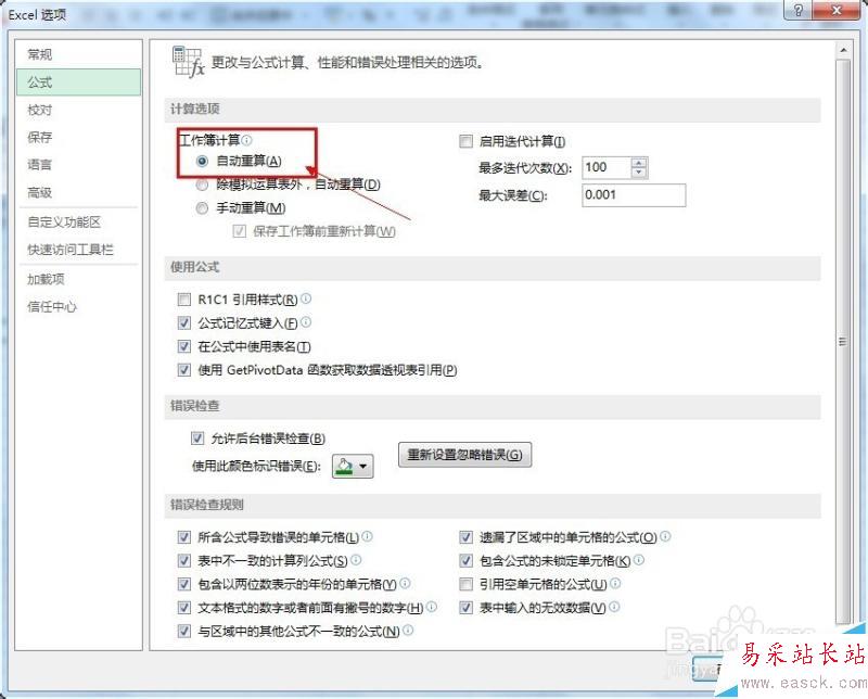 1、依次點擊文件---選項---公式---自動重算。如下圖: