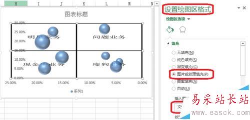 5、設置繪圖區格式——填充——圖片或文理填充——文件。