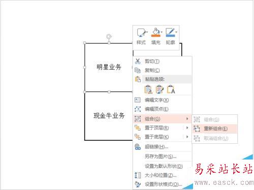 4、圖片的制作。如圖所示,插入矩形框——右擊——組合——圖片另存為,待用。