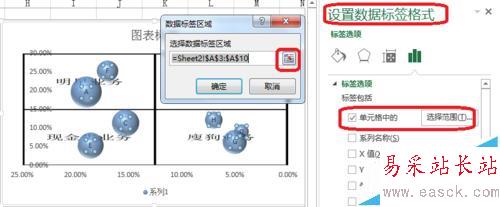 6、設置數據標簽格式——單元格中的(選擇范圍)——數據區域(A,B....各個物流項目)。