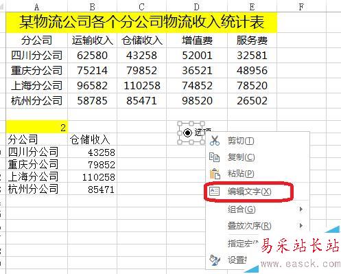 2、右擊——編輯文字。把選項按鈕改成運輸收入....