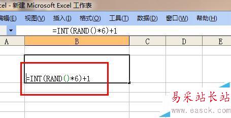 4、在單元格B2中我們輸入公式 =INT(RAND()*6)+1