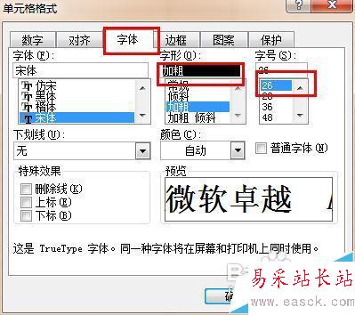 7、接著點擊字體,我們設(shè)置字體為加粗,字號為26
