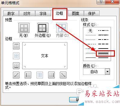 8、接著點擊邊框,設(shè)置邊框為較粗的樣式,溶蝕選擇外邊框。點擊確定就完成了設(shè)置。