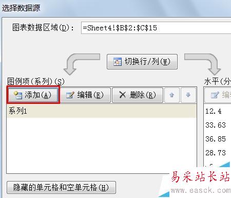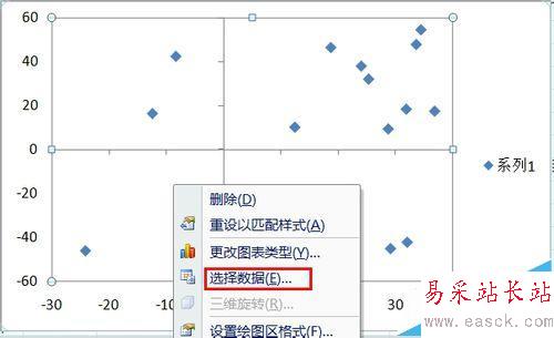4、在繪圖區(qū)域中右鍵選擇:選擇數(shù)據(jù),并在彈出的對(duì)話框中選擇:添加