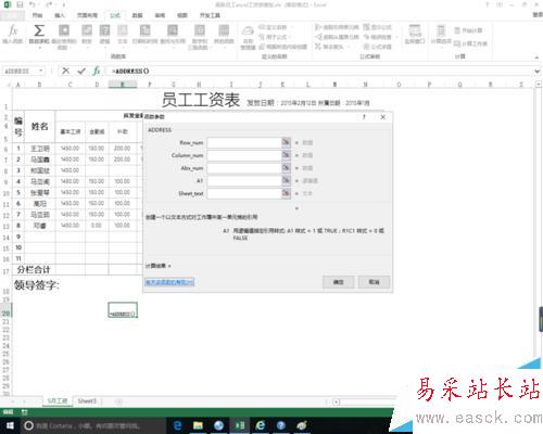 2、插入address函數(shù)。address函數(shù)的格式為=ADDRESS(row_num, column_num, [abs_num], [a1], [sheet_text])
