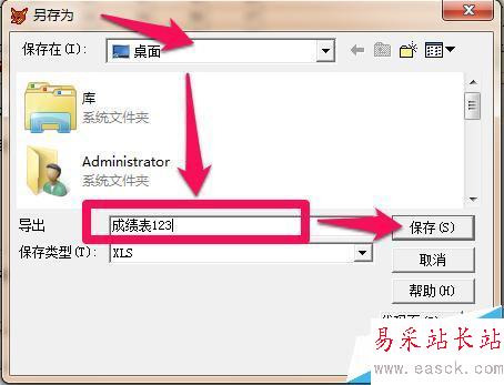 4、我選擇保存在桌面,文件名命名為“成績表123”,請自行命名。單擊 “保存”。